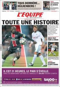 RASSEGNA STAMPA ESTERA L’EQUIPE FRANCIA – La prima pagina del quotidiano transalpino L’Equipe ricorda in maniera molto bella due grandi giocatori del calcio che stasera si sfideranno in Paris Saint Germain-Marsiglia. Il primo è Claude Makelele, centrocampista ex Real Madrid e Chelsea mentre l’altro è il difensore argentino Gabriel Heinze ex del Manchester United con il quale ha vinto molti trofei. Stasera alle ore 21.00 ci sarà il posticipo della Ligue 1 con questi due campioni e molti altri.