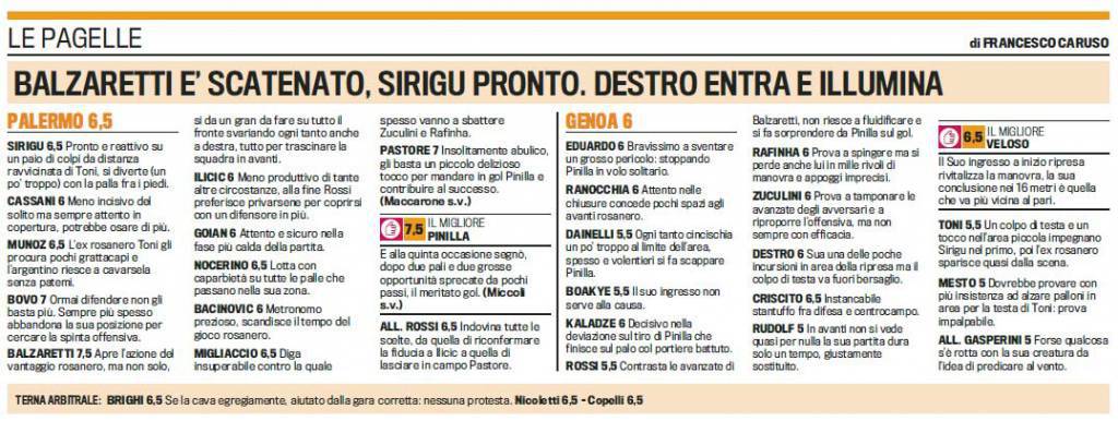 Fantacalcio Serie A Palermo Genoa pagelle Gazzetta – E’ ancora una volta il cileno Mauricio Pinilla a regalare tre preziosissimi punti al suo Palermo, uscito vincitore dal posticipo di Serie A contro il Genoa. Ecco le pagelle della ‘Gazzetta dello Sport’ che premiano la squadra rosanero, al contrario dei giocatori rossoblù che raggiungono a malapena la sufficienza.