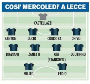 LECCE INTER BENITEZ – L’Inter è in piena emergenza  e Rafa Benitez tenterà di schierare una formazione equilibrata. Si rivedrà tra i titolari Santon, che agirà al posto di Maicon da terzino destro. Potrebbe esserci il debutto dal prio minuto del giovane Obi.