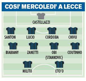LECCE INTER BENITEZ – L’Inter è in piena emergenza e Rafa Benitez tenterà di schierare una formazione equilibrata. Si rivedrà tra i titolari Santon, che agirà al posto di Maicon da terzino destro. Potrebbe esserci il debutto dal prio minuto del giovane Obi.