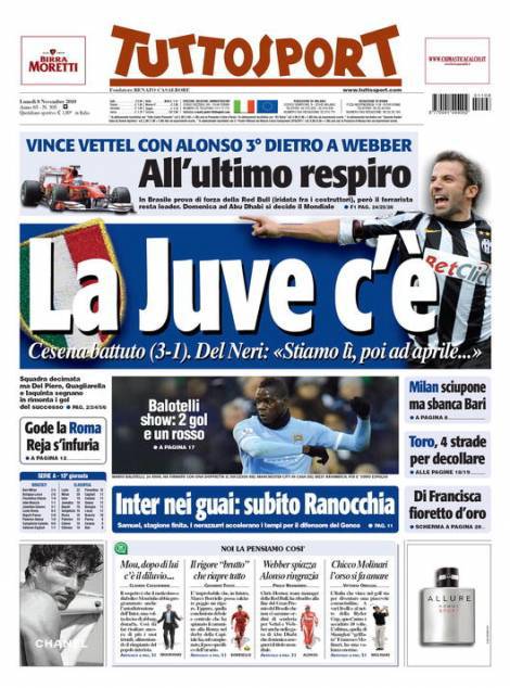 TUTTOSPORT JUVENTUS – Il quotidiano torinese Tuttosport parla della vittoria casalinga della Juventus contro il Cesena per tre a uno. I bianconeri hanno saputo ribaltare il vantaggio iniziale degli uomini di Ficcadenti con il gol di Jimenez.