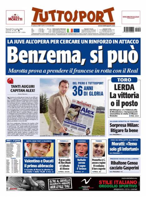 TUTTOSPORT CALCIOMERCATO – Su Tuttosport si parla del calciomercato della Juventus con il possibile arrivo a Torino di Karim Benzema, attaccante francese in rotta con il Real Madrid e con il tecnico Mourinho.
