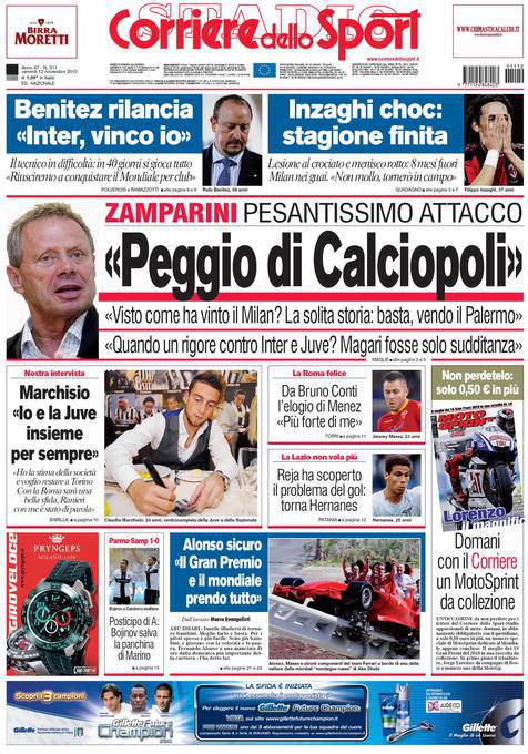 CORRIERE ZAMPARINI RASSEGNA – Sul Corriere dello Sport si parla del duro attacco di Maurizio Zamparini, presidente del Palermo, che dopo il match perso contro il Milan ha parlato nuovamente di scandali arbitrali riferendosi alla pessima conduzione di gara dell’arbitro Banti.