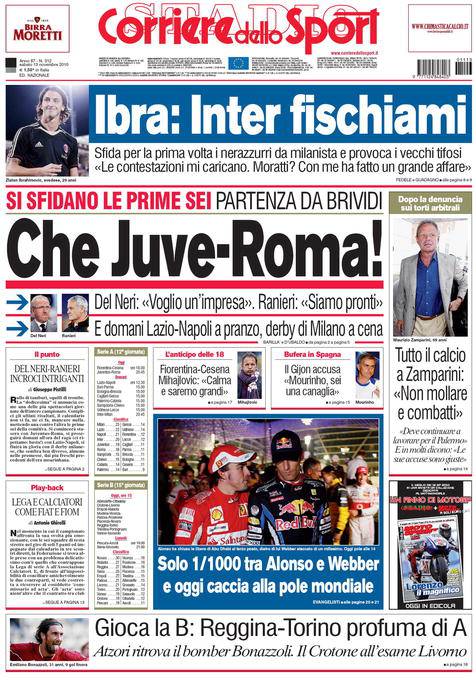 CORRIERE JUVENTUS ROMA – Sul Corriere dello Sport si parla dell’altro grande match della dodicesima giornata di campionato, ovvero Juventus-Roma in programma questa sera alle ore 20.45. Una partita importante come hanno spiegato i due tecnici Ranieri e Delneri.