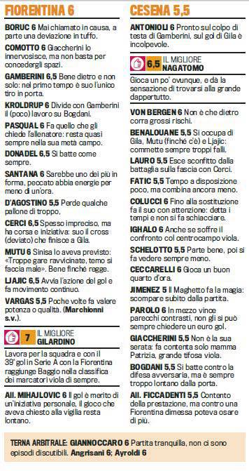 Fantacalcio Serie A Fiorentina Cesena pagelle – Alberto Gilardino è il ‘killer’ del Cesena. Firma il gol-partita e si merita il premio di migliore in campo secondo le pagelle della ‘Gazzetta dello Sport’. Il terzino giapponese, Nagatomo è il migliore tra bianconeri.