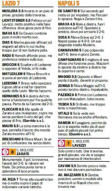 FANTACALCIO SERIE A LAZIO NAPOLI PAGELLE – La Lazio vince due a zero contro il Napoli grazie a un super Zarate autore di un gol e dell’assist per Floccari. E’ lui il migliore in campo, il peggiore è invece Marek Hamsik. Nel Napoli solito grande contributo di Lavezzi. Le pagelle della Gazzetta dello Sport.