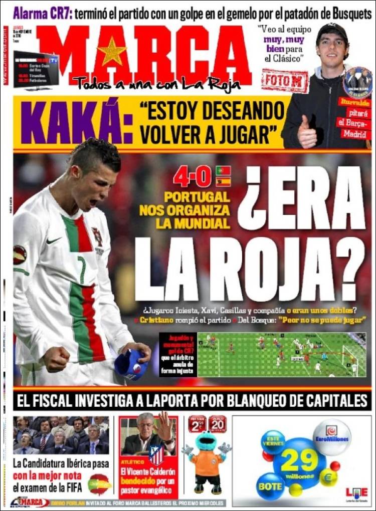 MARCA RASSEGNA – Sul quotidiano spagnolo Marca si parla della clamorosa sconfitta in amichevole della Spagna Campione del Mondo che è stata asfaltata dal Portogallo per quattro a zero, in gol anche Cristiano Ronaldo.