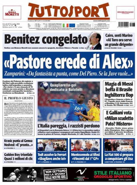 TUTTOSPORT PASTORE – Sul quotidiano torinese Tuttosport si parla del mercato della Juventus e in particolare delle dichiarazioni rilasciate da Zamparini, presidente del Palermo, che ha paragonato Pastore a Del Piero, aprendo ai bianconeri.
