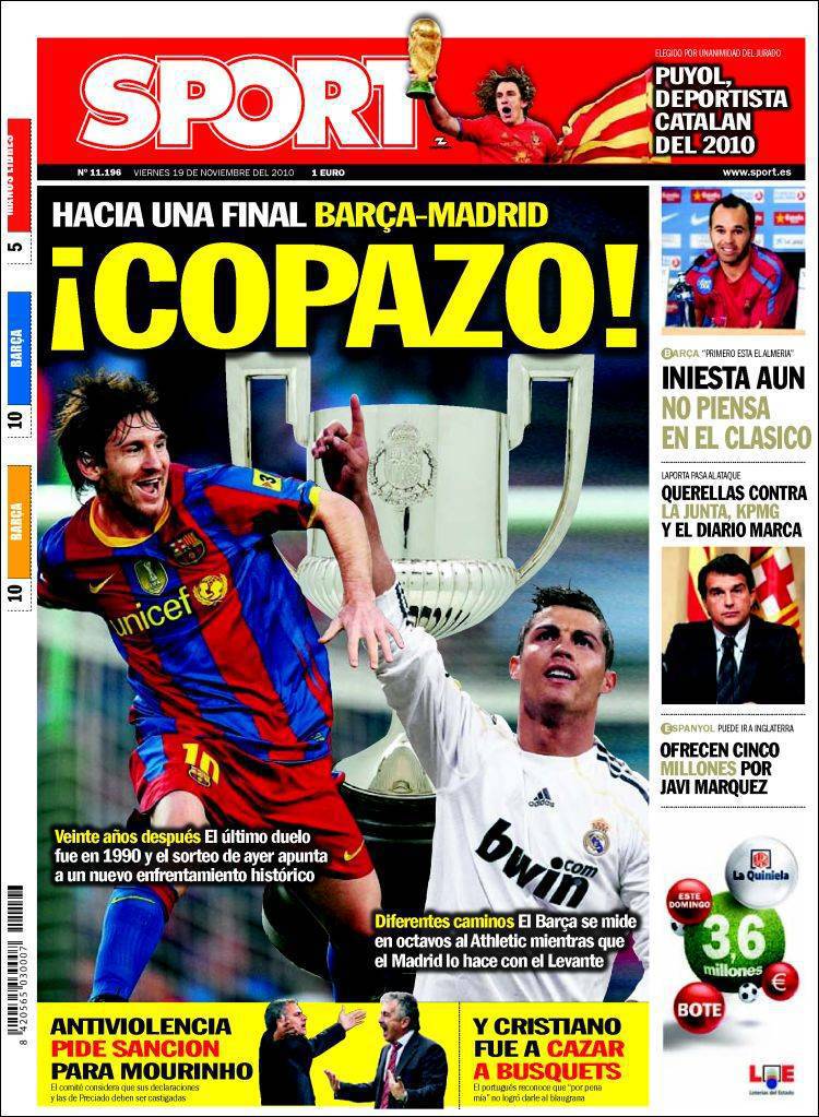 SPORT REAL MADRID BARCELLONA – Sull’altro quotidiano catalano Sport si parla della Copa del Rey e in particolare della possibile finale tra Real Madrid e Barcellona, un match che aumenterebbe notevolmente il prestigio della coppa spagnola.