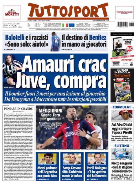 TUTTOSPORT AMAURI JUVENTUS – Sul quotidiano Tuttosport si parla dell’infortunio di Amauri che secondo le prime indiscrezioni dovrà stare fermo circa 3 mesi. Per questo la Juventus ha intenzione di tornare sul mercato alla ricerca di una punta.