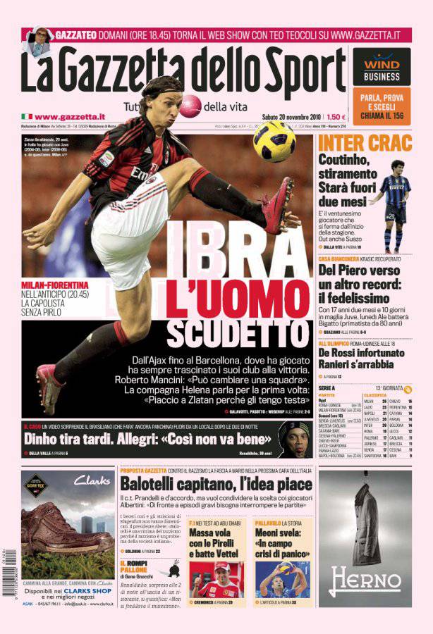 GAZZETTA IBRAHIMOVIC MILAN – Sulla Gazzetta dello Sport si parla di Zlatan Ibrahimovic, centravanti del Milan, che fin dai tempi dell’Ajax ha sempre vinto lo Scudetto in tutte le squadre in cui ha militato. I tifosi del Milan incrociano le dita.