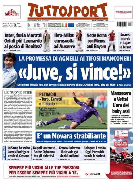 TUTTOSPORT AGNELLI JUVENTUS – Anche Tuttosport riporta le dichiarazioni del presidente della Juventus Andrea Agnelli che ha parlato ai tifosi bianconeri promettendo una squadra forte destinata a vincere in Italia e in Europa.