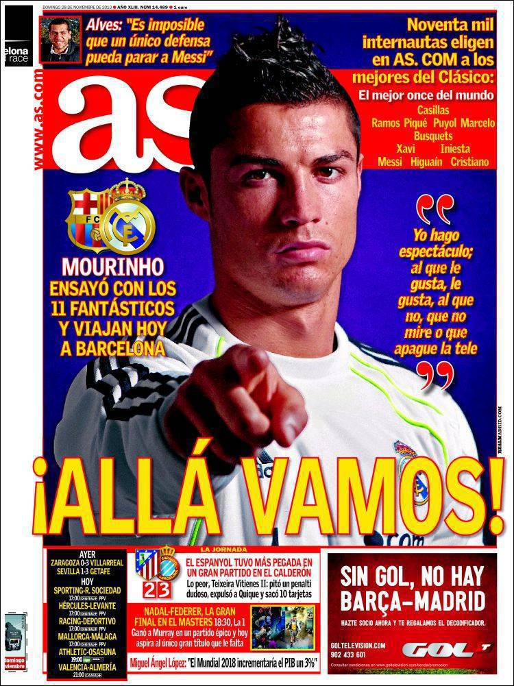 RASSEGNA STAMPA SPAGNOLA ESTERA AS CRISTIANO RONALDO – L’attaccante portoghese del Real Madrid, Cristiano Ronaldo, carica i compagni in vista del superclasico in programma domani sera al Camp Nou, la sfida fra il Barcellona e il Real Madrid.