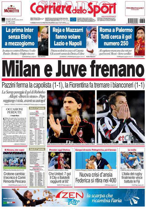 CALCIOMERCATO CORRIERE DELLO SPORT RASSEGNA STAMPA – Ieri è stata una brutta giornata sia per il Milan e sia per la Juve, infatti i i rossoneri sono rimasti bloccati sul risultato di 1 a 1 contro la Sampdoria al Marassi di Genova, nel mentre i bianconeri sono rimasti anch’essi bloccati sempre su un pareggio di 1 a 1 con la Fiorentina che era addirittura andata in vantaggio ed è stata raggiunta solo nei minuti finali del secondo tempo.