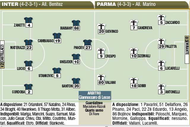 FANTACALCIO INTER-PARMA FORMAZIONI ANTICIPO – Di seguito pubblichiamo le probabili formazioni dell’incontro fra Inter e Parma, in programma alle 12.30 in quel di San Siro, Milano. Non ci dovrebbero essere grandi novità rispetto a quanto annunciato nelle scorse giornate. Viste le moltissime assenze dei nerazzurri spazio a Goran Pandev prima punta con Santon sulla trequarti al fianco di Biabiany e Sneijder. In difesa giocheranno Cordoba e Zanetti e in porta Castellazzi.