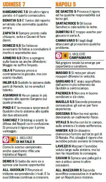Fantacalcio Serie A voti pagelle Gazzetta Udinese Napoli – Antonio Di Natale, con la sua splendida tripletta, è stato il ‘killer’ del Napoli, abbattuto per 3-1 allo stadio ‘Firuli’ di Udine. Disastro Hamsik. La prestazione dello slovacco è la sintesi della pessima giornata dei partenopei e le pagelle della ‘Gazzetta dello Sport’, lo fanno notare chiaramente.
