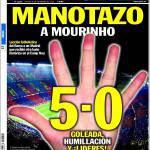 SPORT MOURINHO BARCELLONA REAL MADRID – Anche l’altro quotidiano catalano Sport parla della cinquina rifilata dal Barcellona al Real Madrid di Mourinho. Uno schiaffo al tecnico portoghese e alla formazione madrilena che ha subito una vera lezione di calcio.