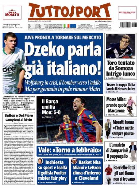 TUTTOSPORT DZEKO JUVENTUS – Il quotidiano torinese Tuttosport parla di Edin Dzeko, centravanti bosniaco del Wolfsburg che potrebbe lasciare il club tedesco già a gennaio visti i pessimi risultati in campionato. Secondo indiscrezioni il giocatore avrebbe già imparato la lingua italiana.