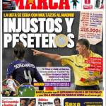 MARCA REAL MADRID SQUALIFICA – Il quotidiano madrileno Marca parla della squalifica di una giornata inflitta dalla Uefa a Josè Mourinho per le due espulsioni pilotate nel match di Champions League tra le merengues e l’Ajax. Non solo, la Uefa ha punito il Real Madrid, Sergio Ramos, Mourinho e Xabi Alonso, infliggendo una multa totale di 215 mila euro.