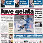 CORRIERE JUVENTUS EUROPA LEAGUE – Sul Corriere dello Sport si parla del pareggio per uno a uno della Juventus nel gelo di Poznan in Polonia che elimina matematicamente i bianconeri dall’Europa League. Polemiche per lo svolgimento del match vista la fitta nevicata.
