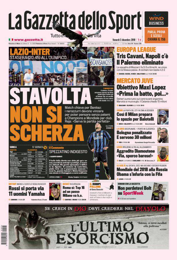 GAZZETTA LAZIO INTER – Sulla Gazzetta dello Sport si parla del match di questa tra Lazio e Inter, anticipo della quindicesima giornata di campionato. Lo scorso anno si giocò in un clima surreale con i tifiso biancocelesti che tifarono apertamente per i nerazzurri in lotta per lo Scudetto con la Roma.