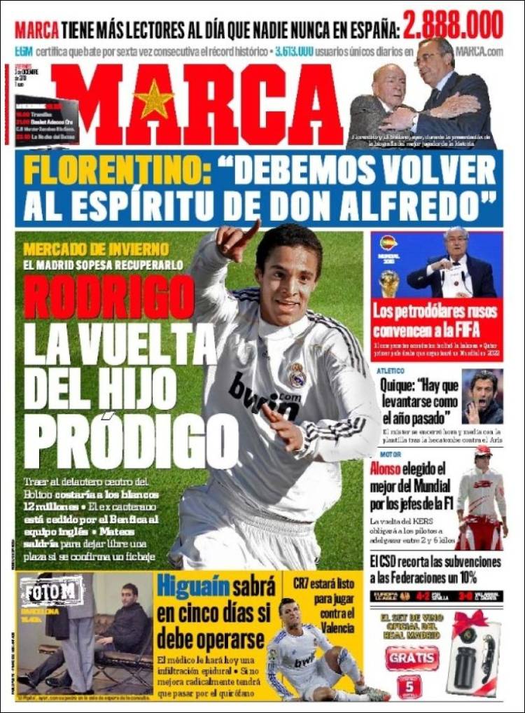 MARCA RODRIGO MOURINHO – Sul quotidiano spagnolo Marca si parla del giovane attaccante della cantera del Real Madrid Rodrigo Machado. Il tecnico Josè Mourinho vista l’assenza di Higuain sembra voglia puntare sul giovane fenomeno spagnolo.