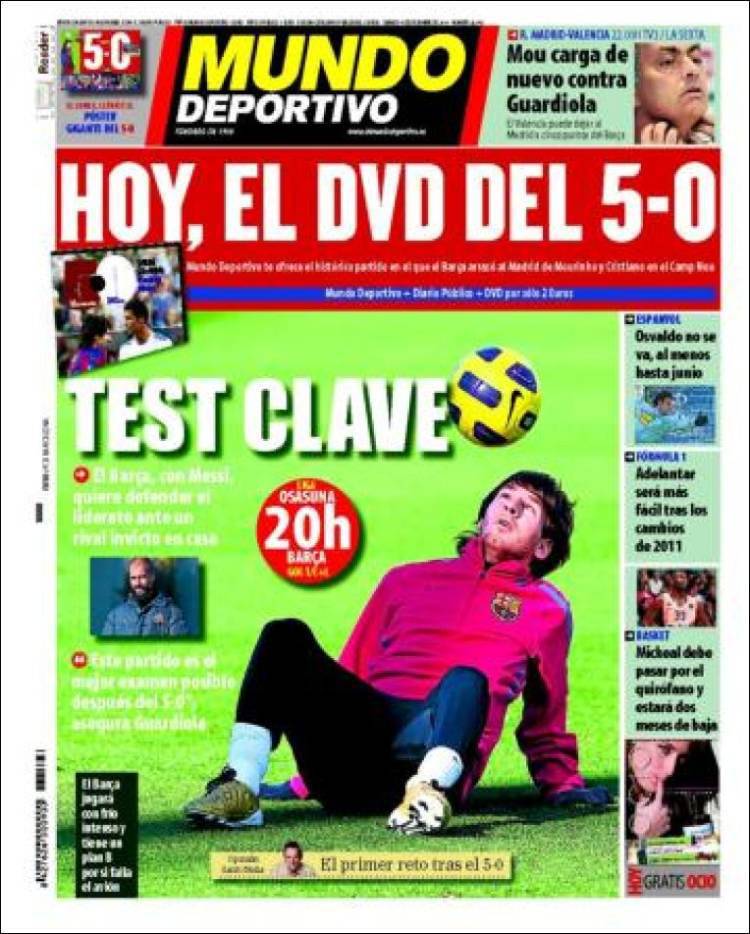 MUNDO DEPORTIVO BARCELLONA OSASUNA – Sul quotidiano catalano Mundo Deportivo si parla del match di questa sera tra Osasuna e Barcellona. Il tecnico dei catalani Guardiola dopo la vittoria per cinque a zero contro il Real Madrid teme una calo di concentrazione da parte di Messi e soci.
