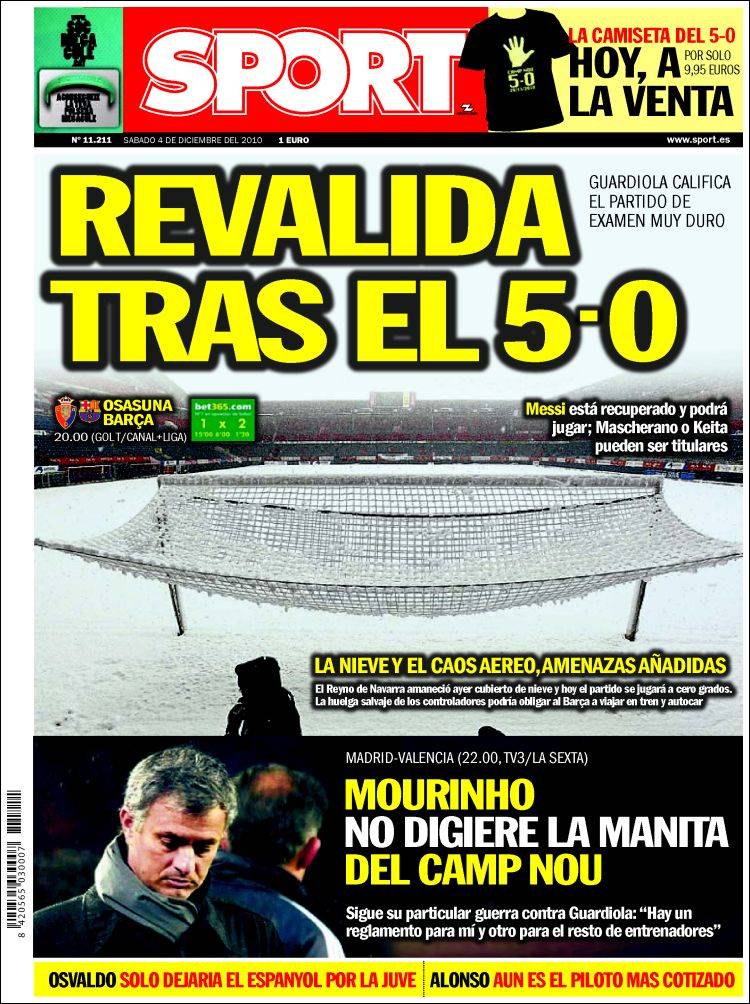 SPORT MOURINHO REAL MADRID – L’altro quotidiano catalano Sport parla del tecnico del Real Madrid Josè Mourinho che ieri in conferenza stampa ha dichiarato che il regolamento del campionato spagnolo viene applicato solo quando c’è di mezzo il Real.