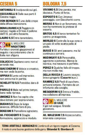 FANTACALCIO SERIE A CESENA BOLOGNA PAGELLE – E’ ancora una volta Marco Di Vaio l’anima di questo Bologna che vince due a zero a Cesena con il gol del proprio capitano e di Britos. Ecco le pagelle della Gazzetta dello Sport.