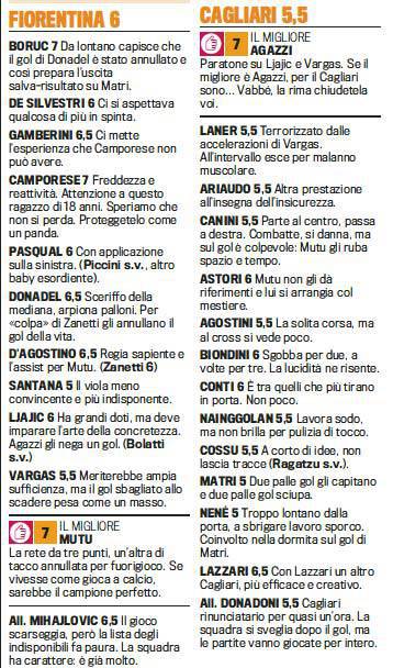 FANTACALCIO SERIE A FIORENTINA CAGLIARI PAGELLE – La Fiorentina ritrova i tre punti e Adrian Mutu. Il campione romeno sigla il gol della vittoria dei viola sul Cagliari con un bel colpo di testa. Per la Gazzetta dello Sport è il migliore in campo. Ecco le pagelle.