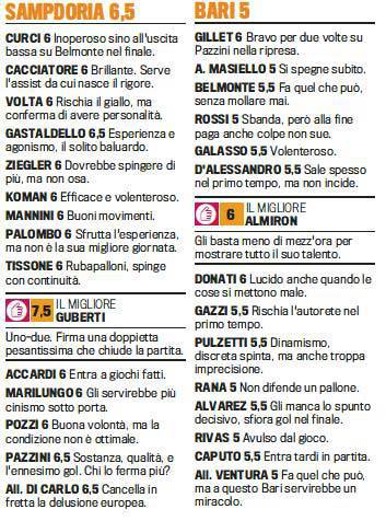 FANTACALCIO SERIE A SAMPDORIA BARI PAGELLE – La Gazzetta dello Sport premia il giocatore della Sampdoria Guberti come migliore in campo. Il centrocampista doriano è stato autore di una doppietta nel 3 a 0 della Sampdoria contro il Bari. Ecco le pagelle della Gazzetta dello Sport.