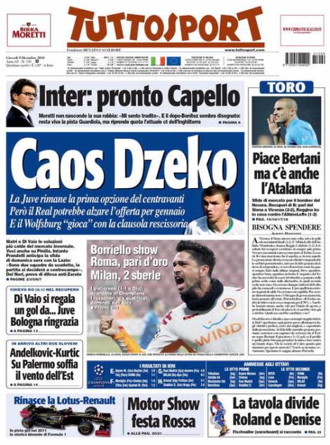 TUTTOSPORT DZEKO JUVENTUS – Sul quotidiano torinese Tuttosport si parla del calciomercato della Juventus e in particolare del futuro di Edin Dzeko, bomber bosniaco el Wolfsburg che piace ai bianconeri ma anche al Real Madrid.