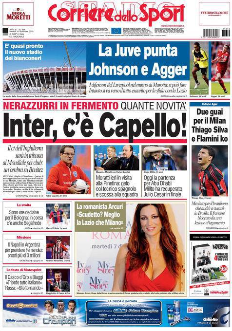 CORRIERE RASSEGNA CAPELLO – Anche il Corriere dello Sport parla della crisi dell’Inter, con il tecnico Benitez che potrebbe essere esonero dopo il Mondiale per Club. In pole position per il quotidiano romano ci sarebbe Capello.