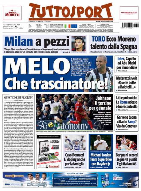 TUTTOSPORT MELO JUVENTUS – Il quotidiano torinese Tuttosport elogia il centrocampista brasiliano della Juventus Felipe Melo, che dopo la pessima stagione nel suo primo anno in bianconero sembra rinato con la cura Delneri.