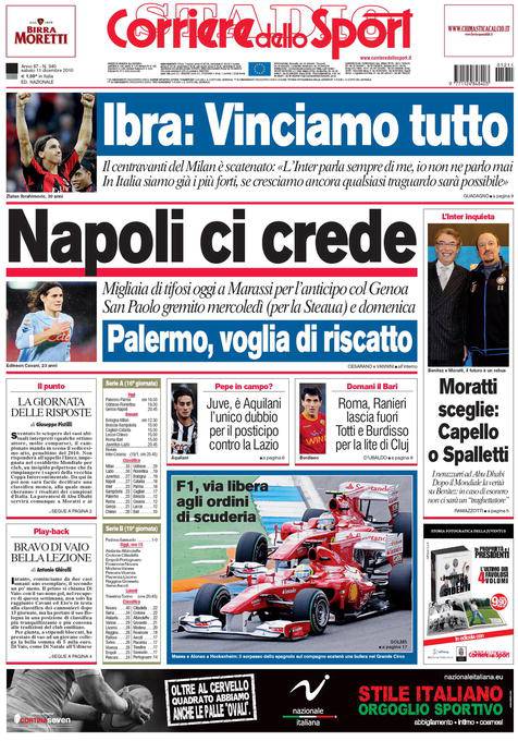 CORRIERE IBRAHIMOVIC – Sul Corriere dello Sport vengono riportate alcune dichiarazioni di Zlatan Ibrahimovic, centravanti del Milan, che ha lanciato messaggi di fuoco a Materazzi e Moratti e ha poi dichiarato che il Milan è pronto a vincere tutto.