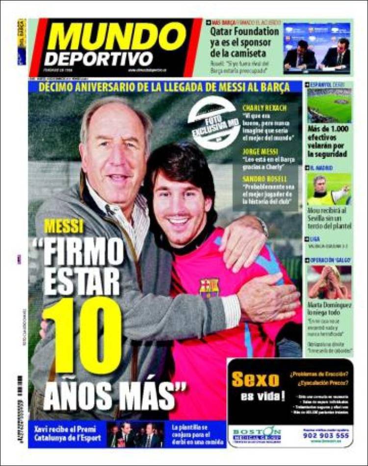 MUNDO DEPORTIVO MESSI BARCELLONA – Il quotidiano catalano Mundo Deportivo parla dei dieci anni al Barcellona di Lionel Messi, fuoriclasse argentino che già da dieci anni veste la maglia blaugrana nonostante i suoi 23 anni d’età.