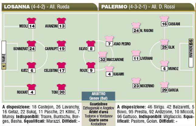 EUROPA LEAGUE LOSANNA PALERMO FORMAZIONI – Non ha nulla da chiedere il Palermo all’Europa e questa sera a Losanna giocherà solo per l’onore. Per l’occasione il tecnico Delio Rossi proporrà alcuni giovani come Joao Pedro e Kasami. Ecco le probabili formazioni secondo il Corriere dello Sport.