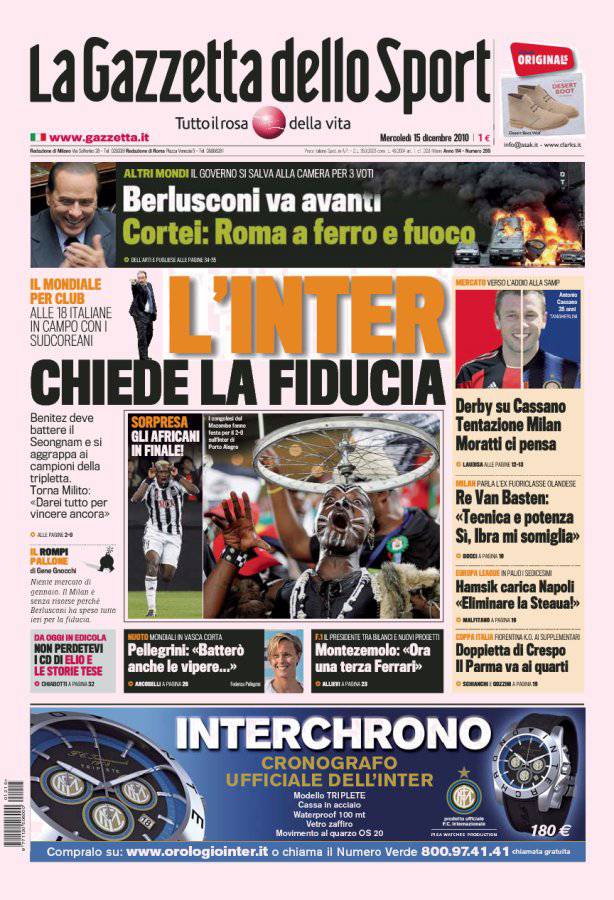 GAZZETTA INTER MONDIALE PER CLUB – Sulla Gazzetta dello Sport si parla dell’Inter di Benitez che oggi debutta nel Mondial per Club affrontando in semifinale i sud-coreani del Seongnam.