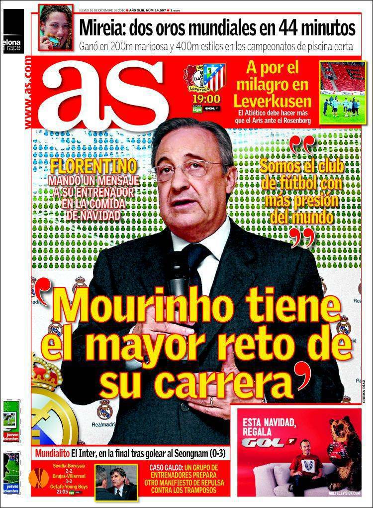 MOURINHO REAL MADRID FLORENTINO PEREZ – Sul quotidiano spagnolo As vengono riportate le dichiarazioni del presidente del Real Madrid Florentino Perez che ha incoraggiato il tecnico Mourinho.