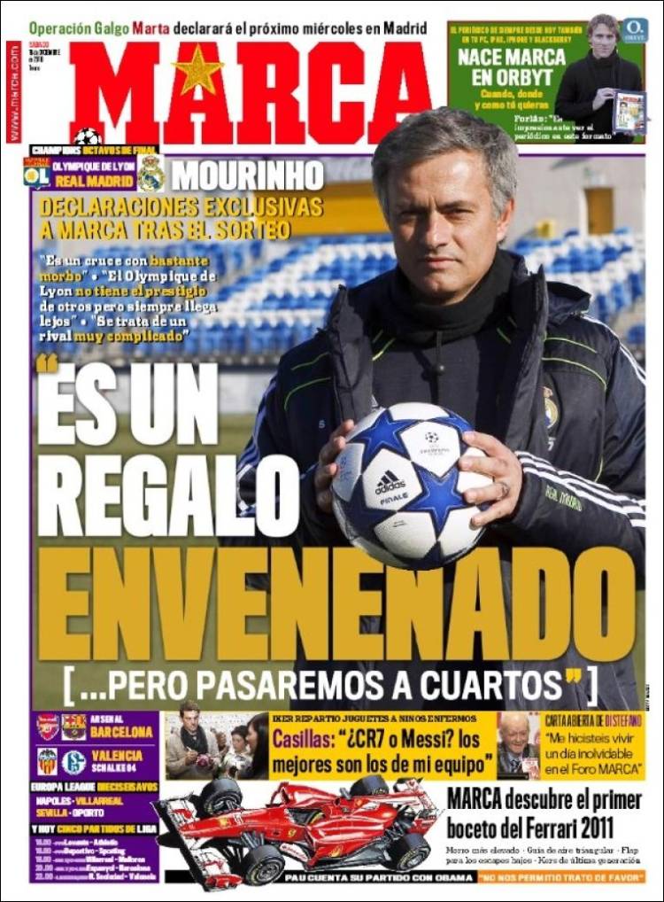 MARCA MOURINHO REAL MADRID – Sul quotidiano spagnolo Marca intervista esclusiva a Josè Mourinho tecnico del Real Madrid che ha parlato del sorteggio di Nyon che vedrà la sfida negli ottavi di finale contro il Lione, che ha già eliminato nella scorsa stagione i madrileni.