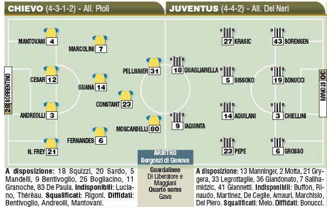 FANTACALCIO FORMAZIONI CHIEVO JUVENTUS – In foto le probabili formazioni di Chievo Juventus, partita da non sottovalutare per i bianconeri che sperano di battare i clivensi per portarsi sempre più vicino al Milan.