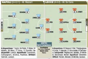 FANTACALCIO SERIA A FORMAZIONI GAZZETTA NAPOLI LECCE – Un derby del Sud ed una prova del nove per un Napoli che deve dimostrare di poter essere una grande: la sfida al San Paolo non è da sottovalutare, anche se fuori casa il Lecce raramente ha impressionato. Eccovi in foto le probabili formazioni tratte dalla Gazzetta dello Sport