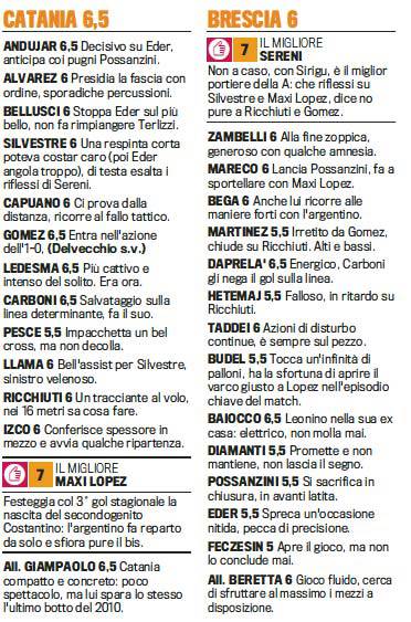 Fantacalcio Serie A Gazzetta Catania Brescia Maxi Lopez – Il bomber argentino del Catania, Maxi Lopez, è tornato finalmente al gol per la felicità dei tifosi siciliani e quelli che possono schierarlo nelle proprie squadre del Fantacalcio. Eccovi dunque le pagelle della ‘Gazzetta dello Sport’, relative all’incontro tra Catania e Brescia.