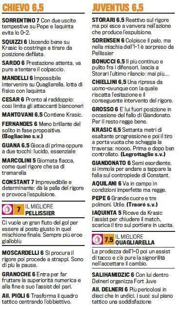 FANTACALCIO SERIE A CHIEVO JUVENTUS PAGELLE – Non basta alla Juventus un gol spettacolare in rovesciata di Quagliarella per battere il Chievo che sigla il gol del pareggio all’ultimo minuto con Pellissier. Ecco le pagelle della Gazzetta dello Sport.