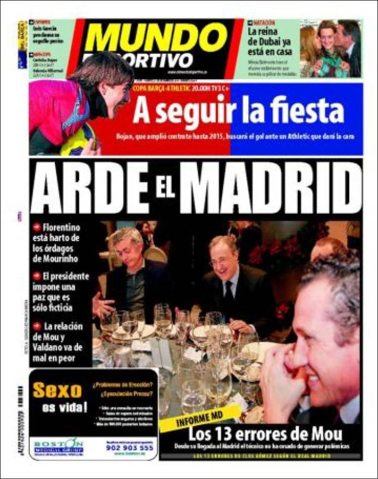 MUNDO DEPORTIVO REAL MADRID – Anche il quotidiano catalano Mundo Deportivo parla della battaglia interna in seno al Real Madrid tra il tecnico Mourinho e il direttore generale Valdano.