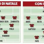 CALCIOMERCATO MILAN CASSANO MODULO ALLEGRI – Ieri il Milan è partito alla volta di Dubai dove inizierà il periodo di preparazione in vista del ritorno in campo previsto il 6 gennaio. Con la comitiva rossonera si è aggiunto anche Antonio Cassano, talento barese prelevato dalla Sampdoria. Il giocatore è stato accolto alla grande dai tifosi, ora toccherà al tecnico Allegri decidere quale sarà il suo ruolo nel modulo rossonero. L’allenatore toscano ha già pensato a un Milan camaleontico che potrebbe giocare sia con il collaudato 4-3-1-2 sia con il 4-3-2-1. Sulla Gazzetta dello Sport sono stati riportati i due moduli con la presenza di FantAntonio in campo. Ecco la foto.