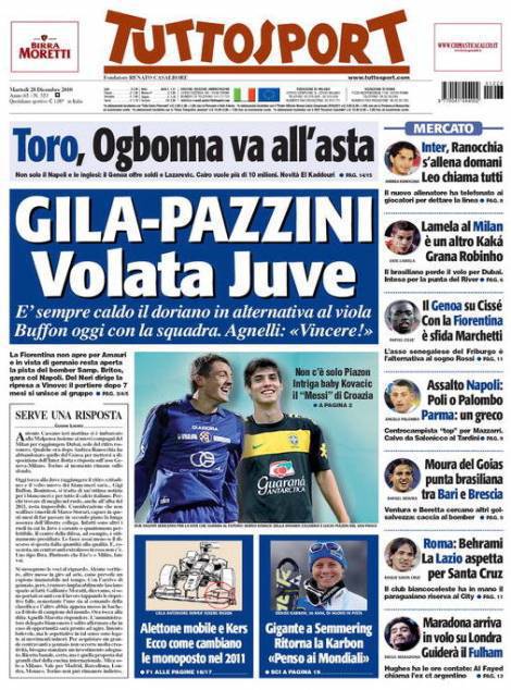 TUTTOSPORT PAZZINI GILARDINO JUVENTUS – Il quotidiano torinese Tuttosport parla del mercato attaccanti in casa Juventus con i bianconeri pronti a prendere uno tra Gilardino e Pazzini.