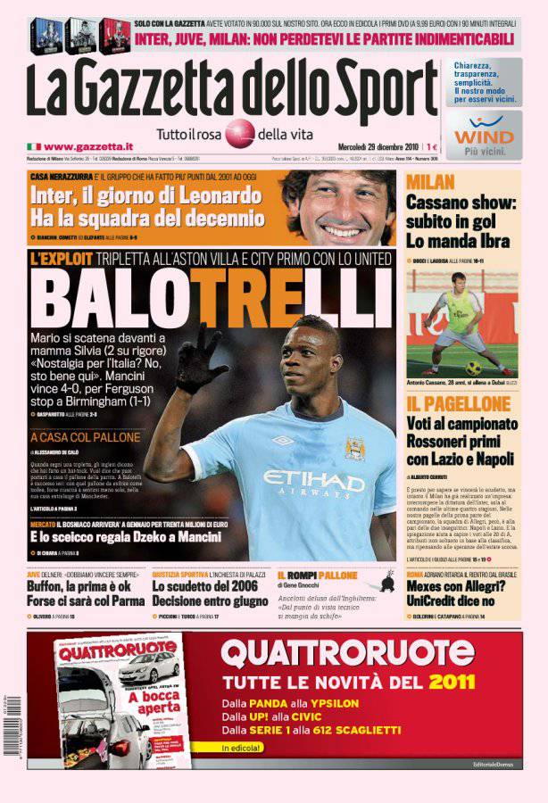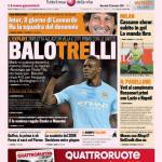 GAZZETTA BALOTELLI – Sulla Gazzetta dello Sport si parla della tripletta di Mario Balotelli con la maglia del Manchester City nel match contro l’Aston Villa. I Citizens di Mancini sono ora in testa alla classifica con lo United.