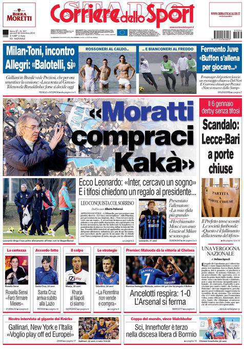 CORRIERE MORATTI KAKA’ – Sul Corriere dello Sport si parla ancora di Kakà-Inter, con i tifosi nerazzurri che hanno chiesto al presidente Moratti l’acquisto del brasiliano.