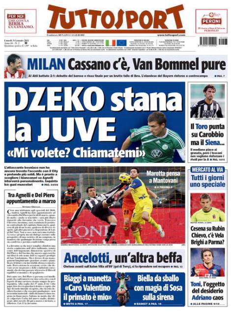 TUTTOSPORT DZEKO JUVENTUS – Il quotidiano torinese Tuttosport parla dell’affare Dzeko con il bomber del Wolfsburg che lancia messaggi alla Juvnetus.